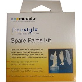 Medela Freestyle Spare Parts Kit Features Hands-free accessories provides the freedom for true pumping mobility. Includes two breastshield bodies, membranes and back caps. Medela Freestyle Spare Parts Kit Breastshield connectors for freestlye breastpump only. Will work with both PersonalFit and SoftFit breastshields. Contents:(2) breastshield connectors, (2) membranes. (Breastshield sold seperately)